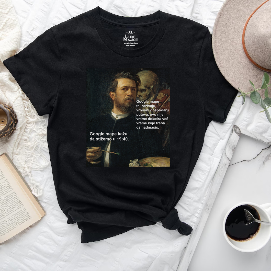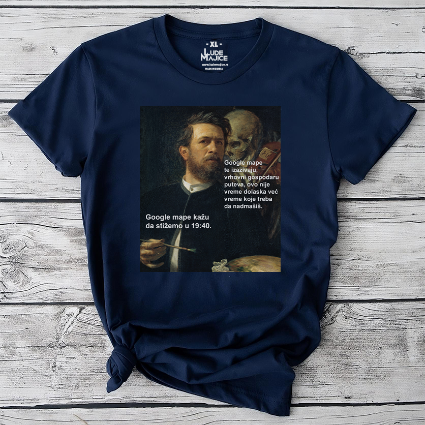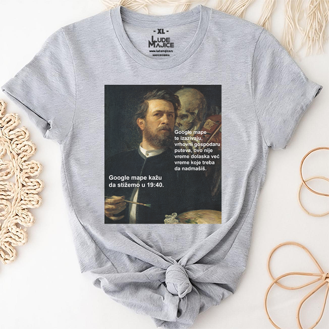 Google mape kažu da stižemo u 19:40. Google mape te izazivaju, vrhovni gospodaru puteva, ovo nije vreme dolaska već vreme koje treba da nadmašiš., ženska i muška majica sa kratkim rukavima.