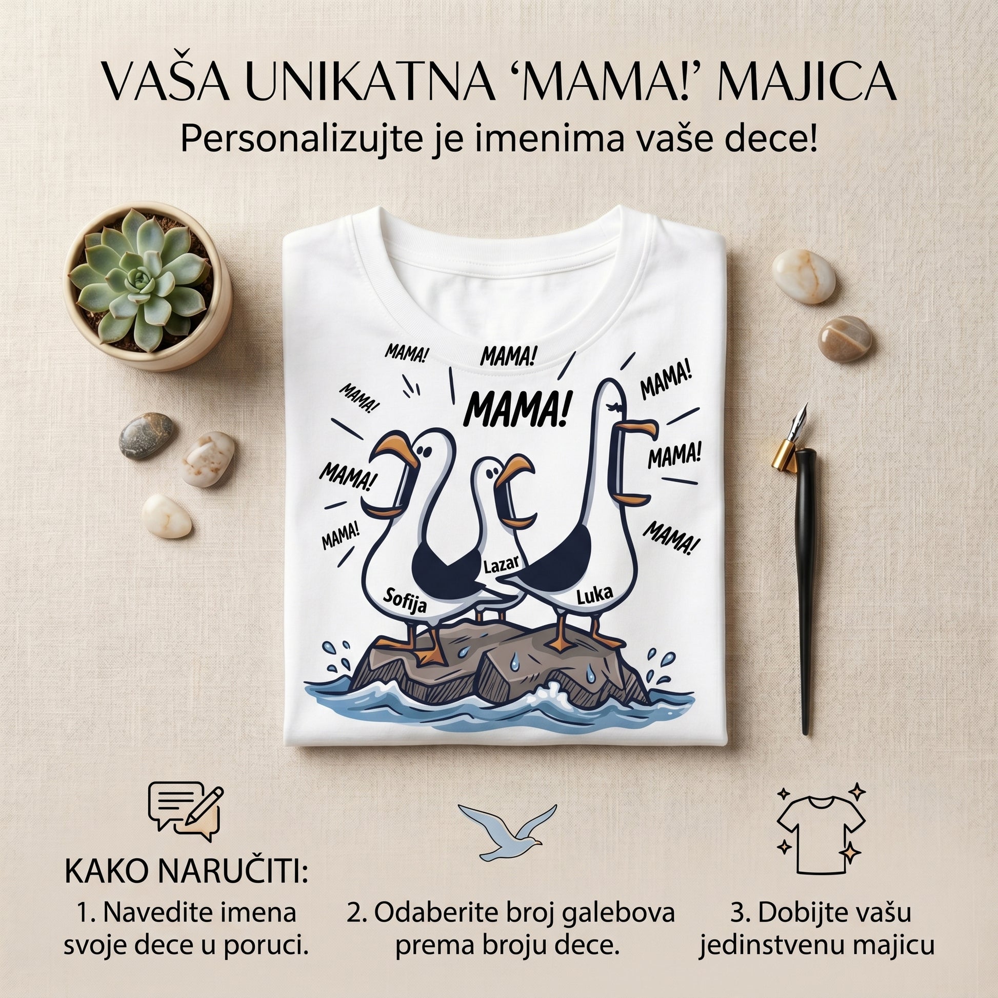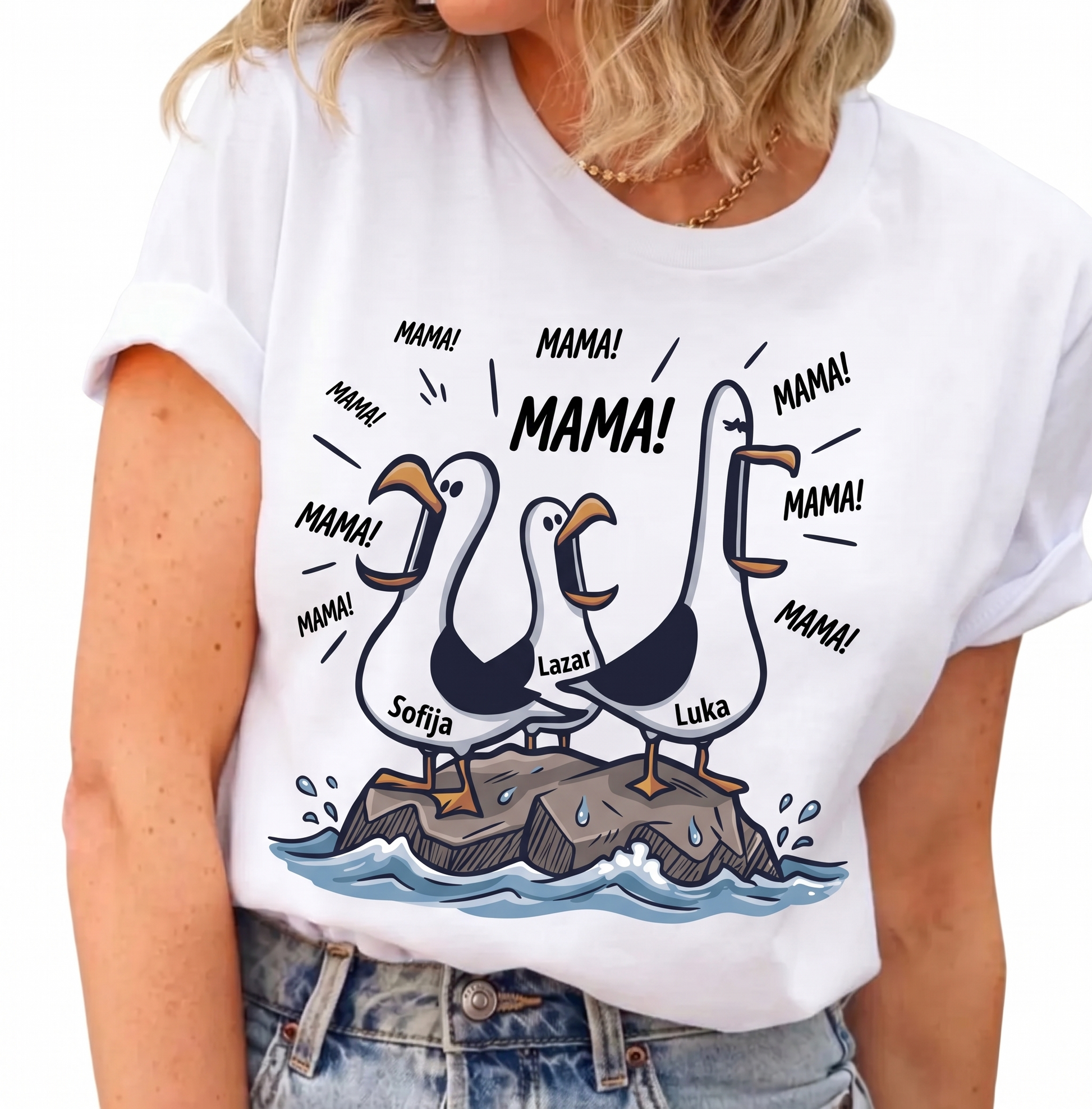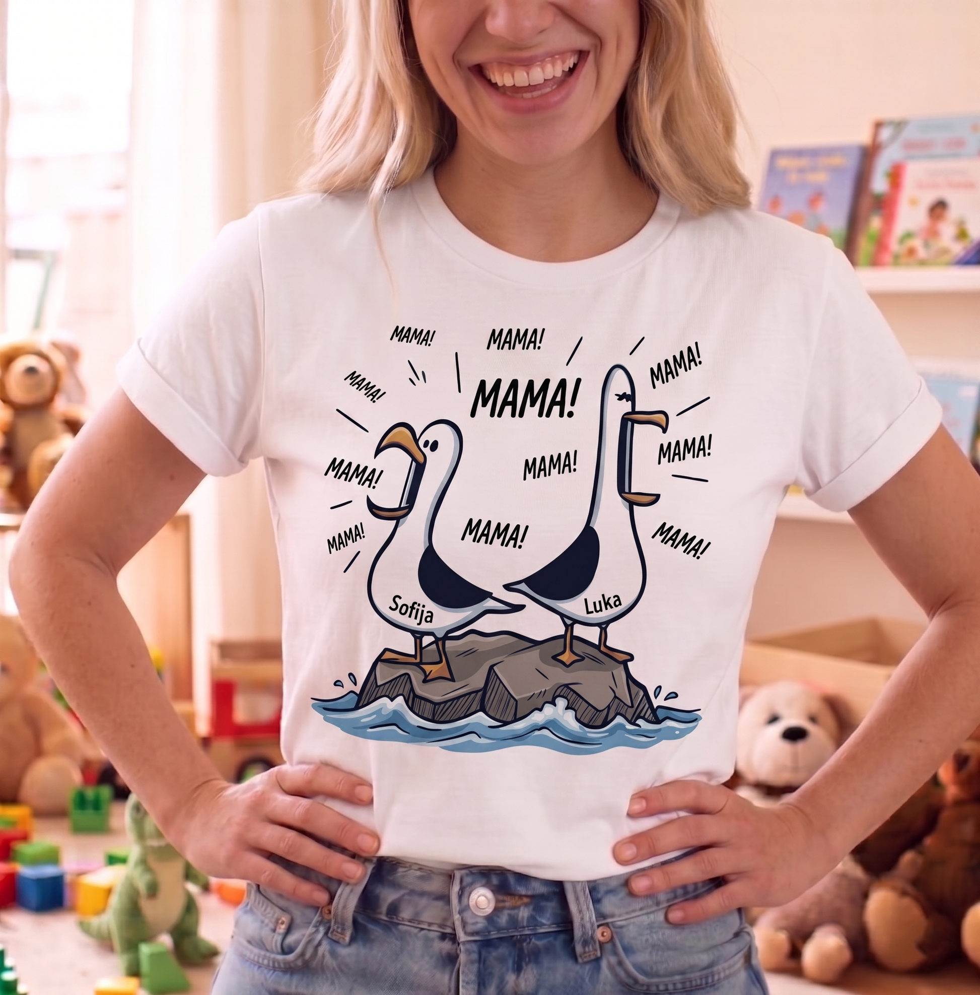 Tražiš savršen spoj humora i dobro poznate svakodnevice svake majke? Naša majica sa urnebesnim galebovima koji uglas viču "MAMA!" postala je apsolutni favorit svih onih koje cene dobar "vibe" i znaju tačno kako izgleda kad te deca dozivaju sto puta u minuti.